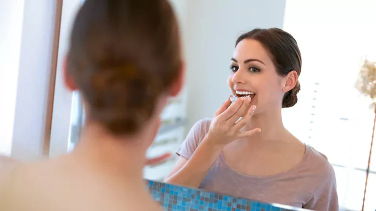 • Place a small amount of gel in each tooth compartment of the tray before applying the retainer to your teeth. Remove any excess gel on gums with your finger or a dry toothbrush.