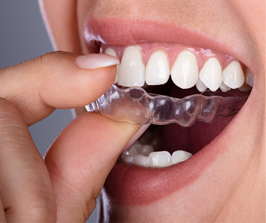 PolaNight is applied to a mouth guard or retainer before being worn over teeth: